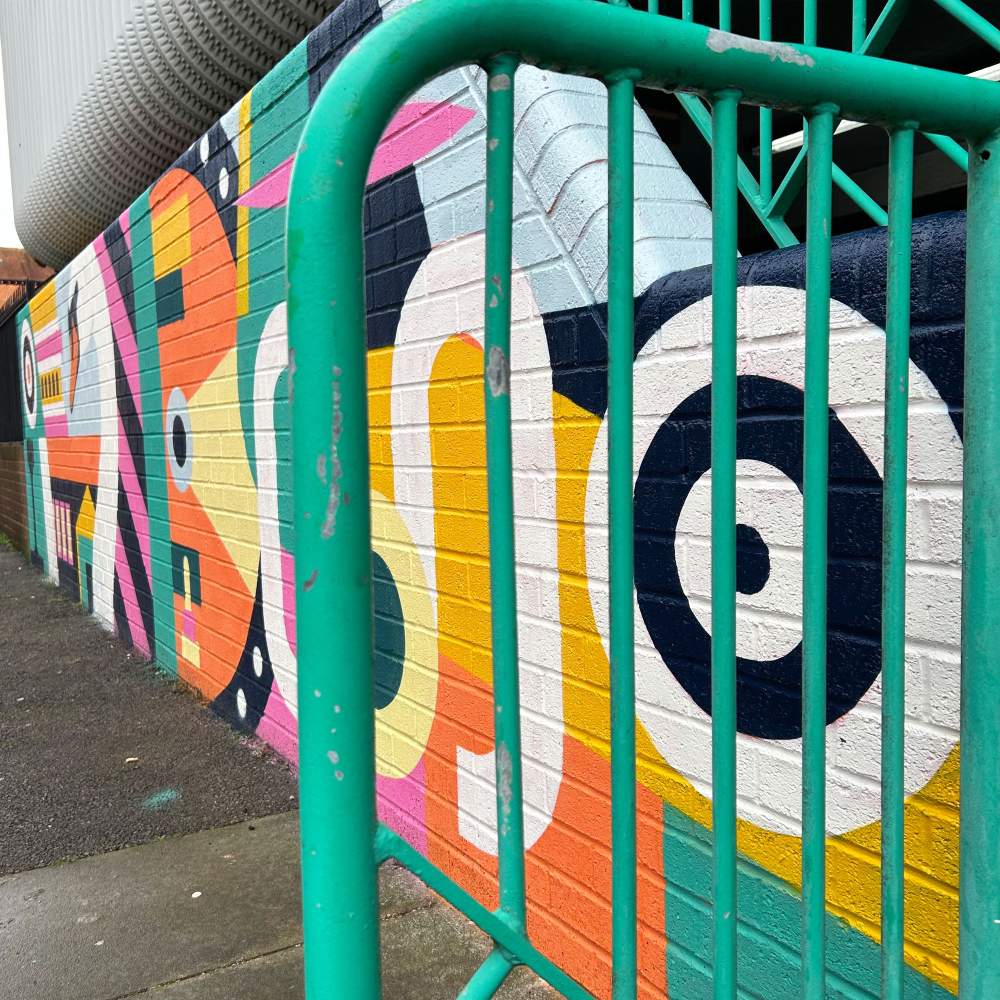 The mural itself offers a contemporary interpretation of these historic references, looking to the future while breathing new life into the visual language of the past. It includes a nod to the Supermarine Spitfire, which made its maiden flight from Eastleigh in 1936, alongside the tail section of a Horsa glider, around 200 of which were produced in the town. There are also various elements of railway and locomotive paraphernalia, as well as architectural references to the iconic Eastleigh Works.